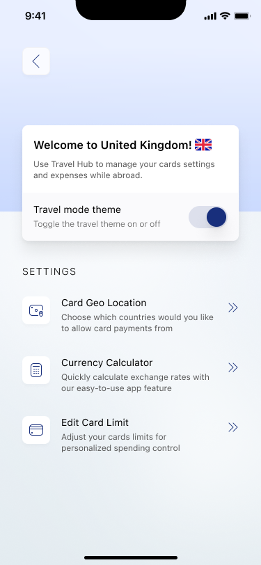 Help users manage their cards and spending more confidently while traveling abroad—without overwhelming them with settings or disrupting their experience?🚀